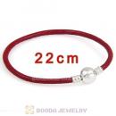 22cm Red Braided Leather Bracelet with Silver Round Clip fit European Beads