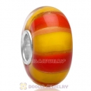 European New Style Yellow and Red Stripe Glass Beads with 925 Silver Single Core