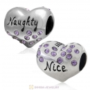 925 Sterling Silver Nice or Naughty Heart Bead with Tanzanite Crystal