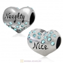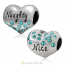 925 Sterling Silver Nice or Naughty Heart Bead with Aquamarine Crystal