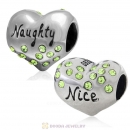925 Sterling Silver Nice or Naughty Heart Bead with Peridot Crystal
