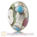 Colored Dots Silver Foil Glass Charm Beads With Sterling Silver Single Core