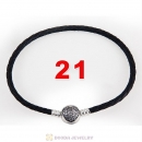 21cm Black Braided Leather Bracelet 925 Silver Love of My Life Round Clip with Heart White CZ Stone