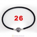 26cm Black Braided Leather Bracelet 925 Silver Love of My Life Round Clip with Heart White CZ Stone