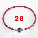 26cm Pink Braided Leather Bracelet 925 Silver Love of My Life Round Clip with Heart White CZ Stone