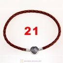 22cm Brown Braided Leather Bracelet 925 Silver Love of My Life Round Clip with Heart White CZ Stone
