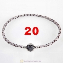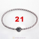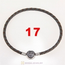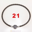 40cm Brpwn Braided Leather Double Bracelet Silver Love of My Life Clip with Heart White CZ Stone