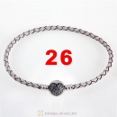 26cm White Braided Leather Bracelet 925 Silver Love of My Life Round Clip with Heart White CZ Stone