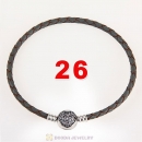 26cm Brown Braided Leather Bracelet 925 Silver Love of My Life Round Clip with Heart White CZ Stone