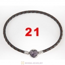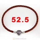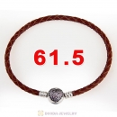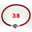40cm Brpwn Braided Leather Double Bracelet Silver Love of My Life Clip with Heart Pink CZ Stone