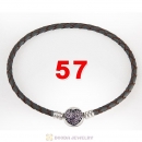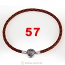 57cm Brown Braided Leather Triple Bracelet Silver Love of My Life Clip with Heart Pink CZ Stone