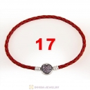 17cm Red Braided Leather Bracelet 925 Silver Love of My Life Round Clip with Heart Pink CZ Stone