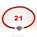 21cm Red Braided Leather Bracelet 925 Silver Love of My Life Round Clip with Heart Pink CZ Stone