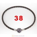 38cm Brown Braided Leather Double Bracelet Silver Love of My Life Clip with Heart Pink CZ Stone
