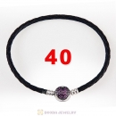 40cm Black Braided Leather Double Bracelet Silver Love of My Life Clip with Heart Red CZ Stone