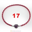 17cm Pink Braided Leather Bracelet 925 Silver Love of My Life Round Clip with Heart Red CZ Stone