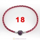 18cm Pink Braided Leather Bracelet 925 Silver Love of My Life Round Clip with Heart Red CZ Stone