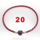 20cm Pink Braided Leather Bracelet 925 Silver Love of My Life Round Clip with Heart Red CZ Stone