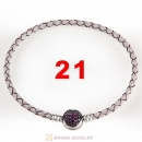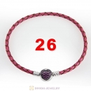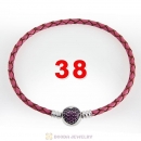 26cm Pink Braided Leather Bracelet 925 Silver Love of My Life Round Clip with Heart Red CZ Stone