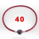40cm Pink Braided Leather Double Bracelet Silver Love of My Life Clip with Heart Red CZ Stone