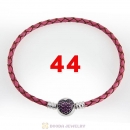 44cm Pink Braided Leather Double Bracelet Silver Love of My Life Clip with Heart Red CZ Stone