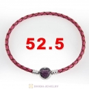 52.5cm Pink Braided Leather Triple Bracelet Silver Love of My Life Clip with Heart Red CZ Stone