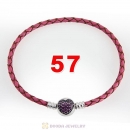57cm Pink Braided Leather Triple Bracelet Silver Love of My Life Clip with Heart Red CZ Stone
