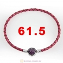 61.5cm Pink Braided Leather Triple Bracelet Silver Love of My Life Clip with Heart Red CZ Stone