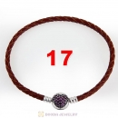 17cm Brown Braided Leather Bracelet 925 Silver Love of My Life Round Clip with Heart Red CZ Stone