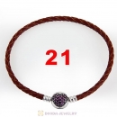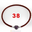40cm Brpwn Braided Leather Double Bracelet Silver Love of My Life Clip with Heart Red CZ Stone