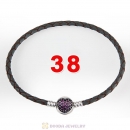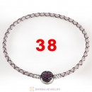 38cm Grey Braided Leather Double Bracelet Silver Love of My Life Clip with Heart Red CZ Stone