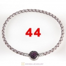 44cm Grey Braided Leather Double Bracelet Silver Love of My Life Clip with Heart Red CZ Stone