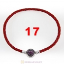 17cm Red Braided Leather Bracelet 925 Silver Love of My Life Round Clip with Heart Red CZ Stone