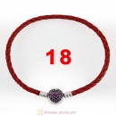 18cm Red Braided Leather Bracelet 925 Silver Love of My Life Round Clip with Heart Red CZ Stone