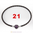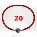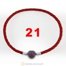 21cm Red Braided Leather Bracelet 925 Silver Love of My Life Round Clip with Heart Red CZ Stone