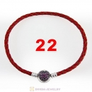 22cm Red Braided Leather Bracelet 925 Silver Love of My Life Round Clip with Heart Red CZ Stone
