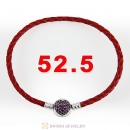 52.5cm Red Braided Leather Triple Bracelet Silver Love of My Life Clip with Heart Red CZ Stone