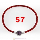 57cm Red Braided Leather Triple Bracelet Silver Love of My Life Clip with Heart Red CZ Stone