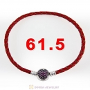 61.5cm Red Braided Leather Triple Bracelet Silver Love of My Life Clip with Heart Red CZ Stone