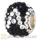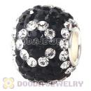 Silver European Forever Bloom Dangle Charms 8mm White-Black Czech Crystal Beads
