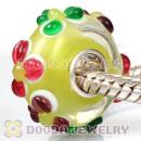 Handmade European Flower Glass Beads Inside Cubic Zirconia In 925 Silver Core