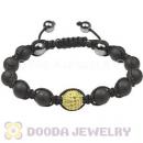 Sterling Silver Disco Ball Logo Bead Men Macrame Bracelet With Black Onyx Hemitite