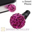 8mm Fushia Czech Crystal Ball Earphone Jack Plug For iPhone Wholesale