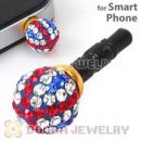 8mm Blue Czech Crystal Ball Earphone Jack Plug For iPhone Wholesale