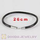 26cm black slippy leather chain, silver plated needle clasp fit Jewelry, European Beads, Lovecharmlinks etc