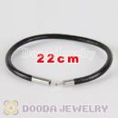 22cm black slippy leather chain, silver plated needle clasp fit Jewelry, European Beads, Lovecharmlinks etc