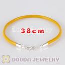 38cm yellow slippy leather chain, silver plated lobster clasp fit Jewelry, European Beads, Lovecharmlinks etc