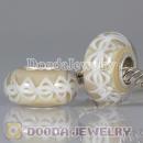 European Style White Cat Eye Lampwork Glass Beads in alloy double core