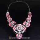 Luxury brand Hot Pink and Clear Crystal Flower Statement Necklaces Wholesale