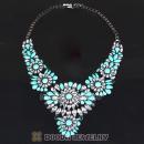 Luxury brand Turquoise Resin Crystal Flower Statement Necklaces Wholesale